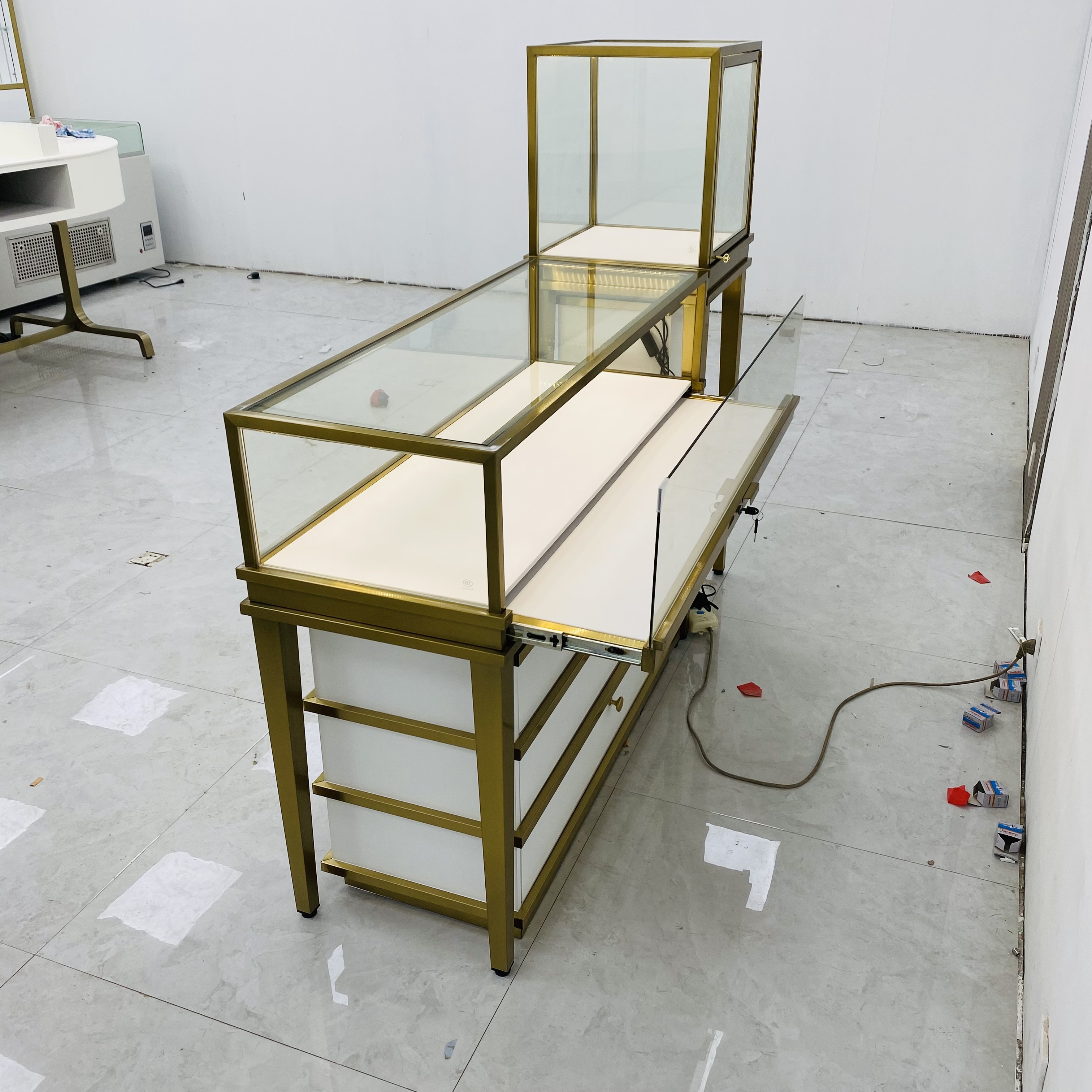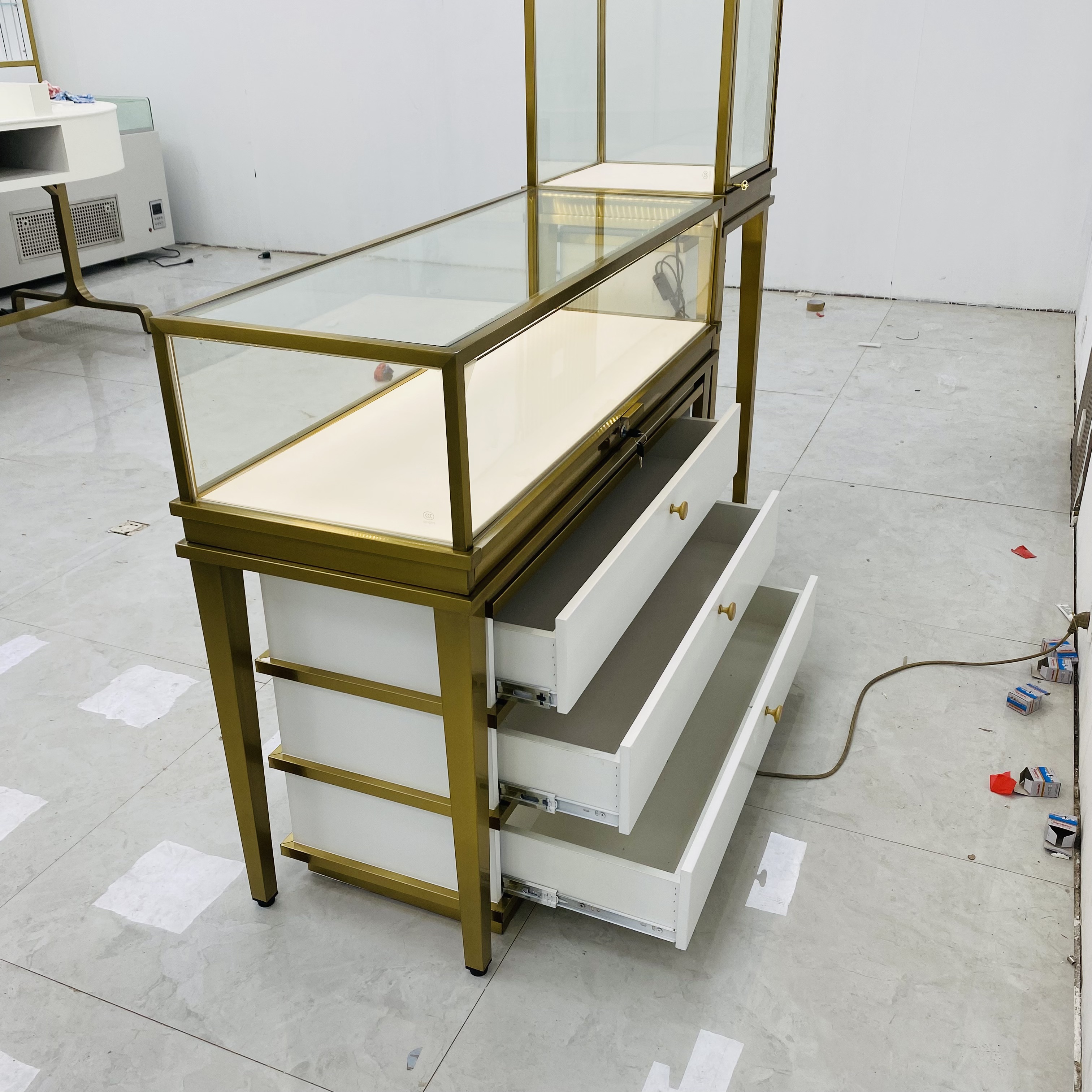 2. Высококачественные торговые центры и торговые центры: в высококлассных торговых центрах и торговых центрах индивидуальные стеклянные шкафы часто используются для демонстрации ювелирных брендов высокого класса. Эти отображающие шкафы могут не только подчеркнуть знати и элегантность ювелирных изделий, но и улучшить имидж бренда и оценку, привлекая больше внимания и покровительства потребителей. В то же время персонализированная настройка и интеллектуальное применение индивидуальных стеклянных шкафов также могут удовлетворить потребности и предпочтения различных брендов, добавляя уникальные основные моменты в торговые центры и торговые центры.