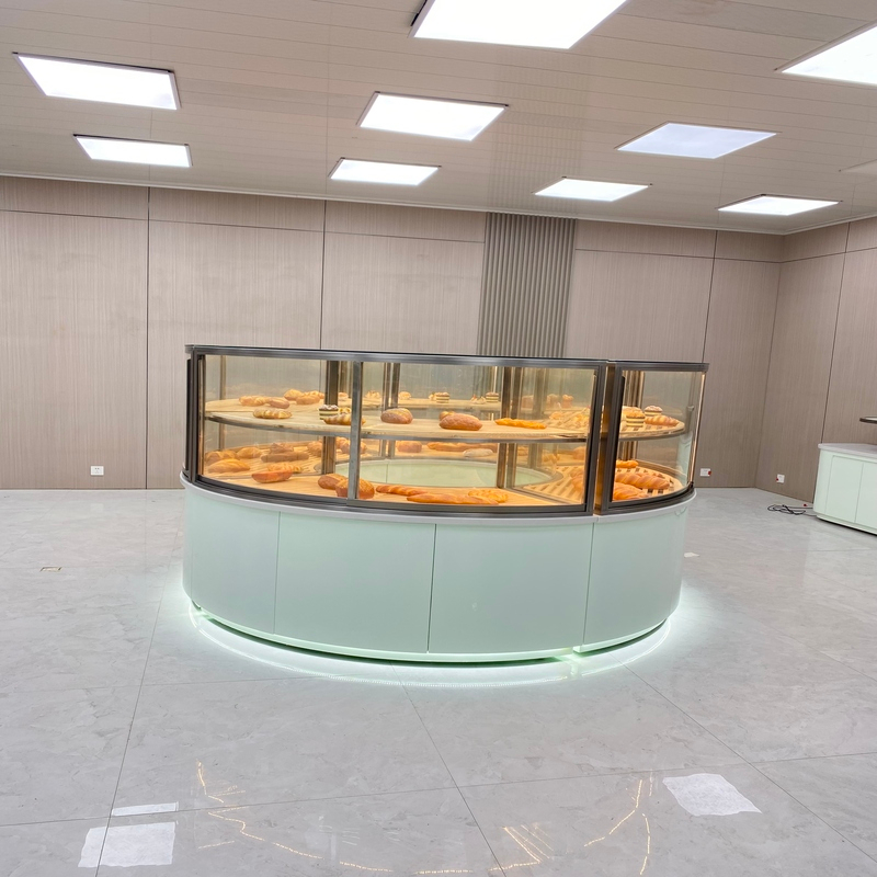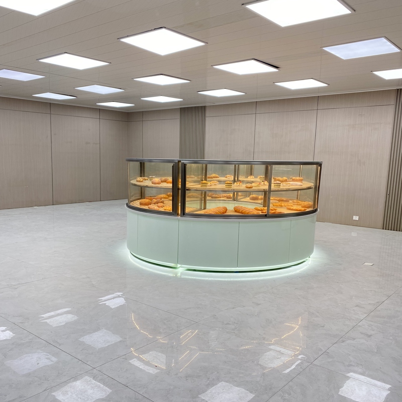 Круглый шкаф для дисплея хлеба может максимизировать отображение хлебных продуктов и привлечь внимание клиентов, оптимизируя компоновку пространства и систему освещения. В то же время функция охлаждения обеспечивает свежесть и вкус хлеба, что делает клиентов более гарантированными при покупке. Все эти функции помогают продвигать продажи и улучшить экономические выгоды магазина.