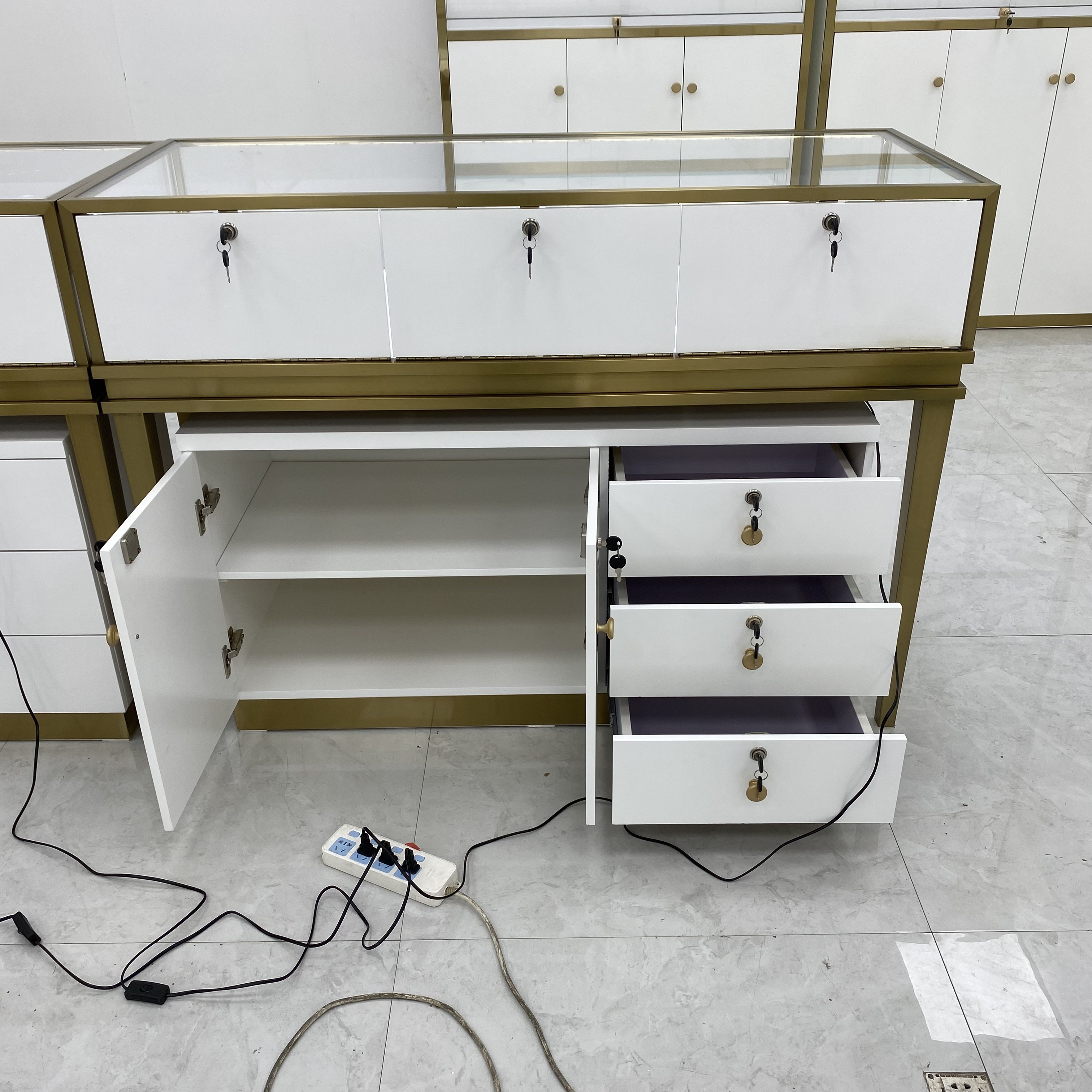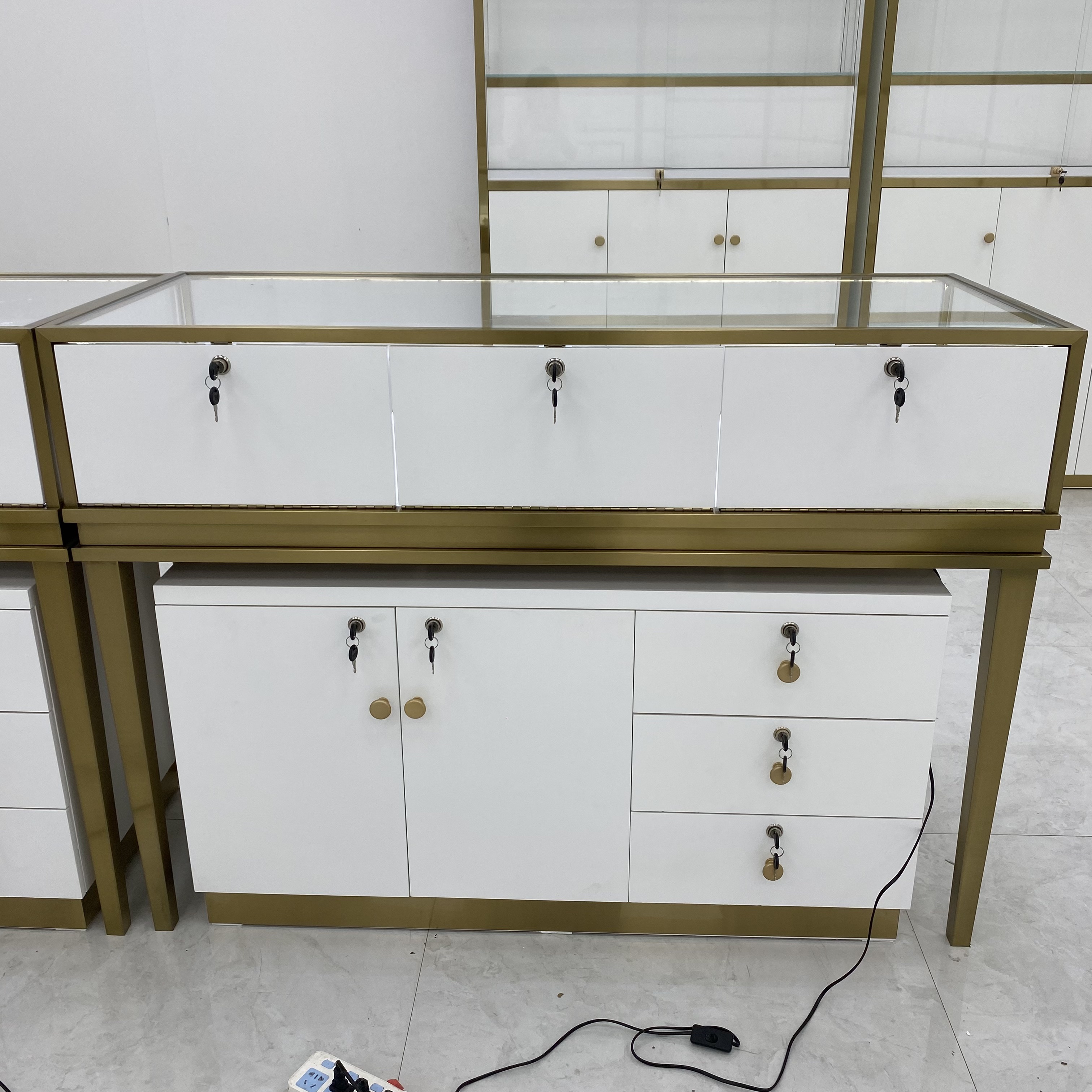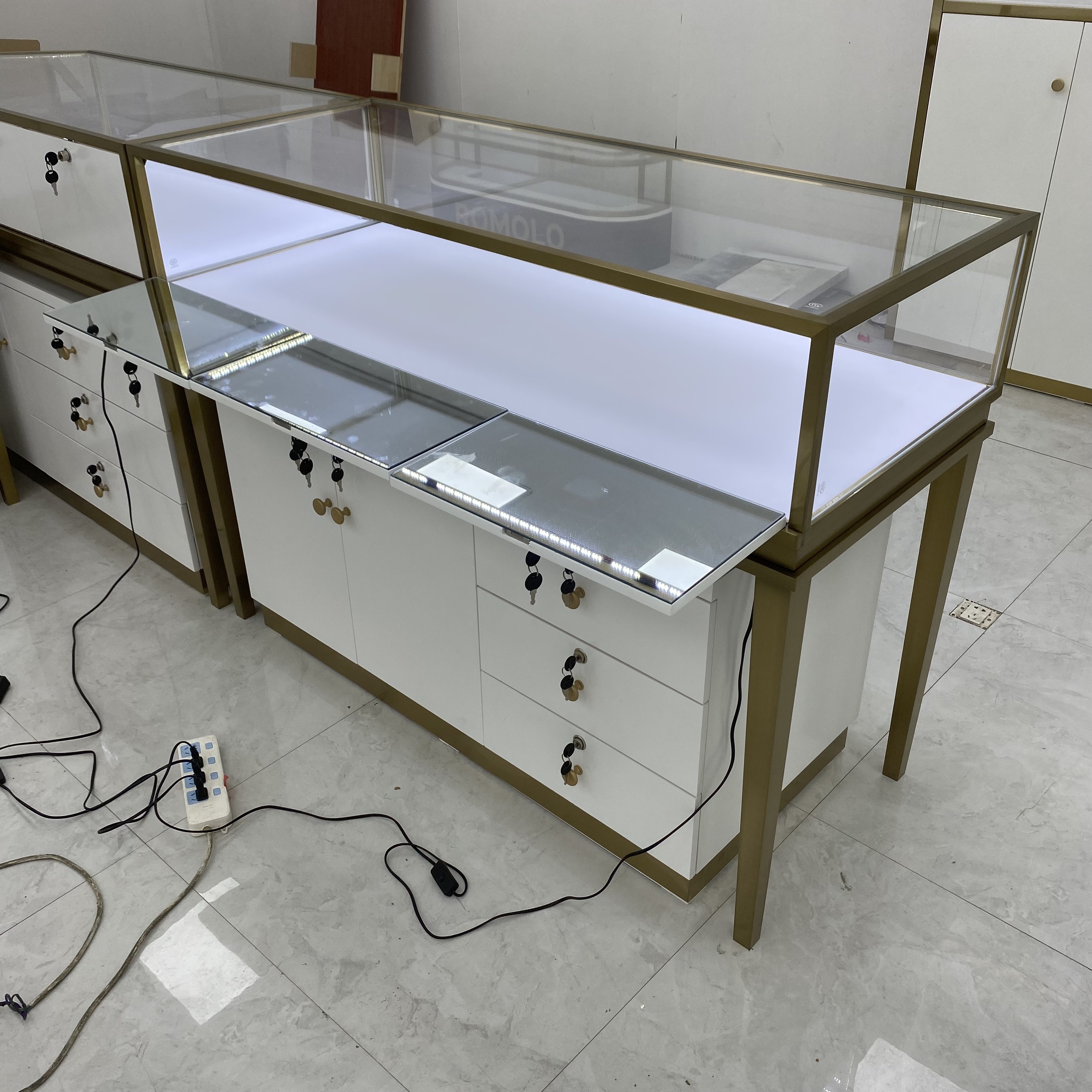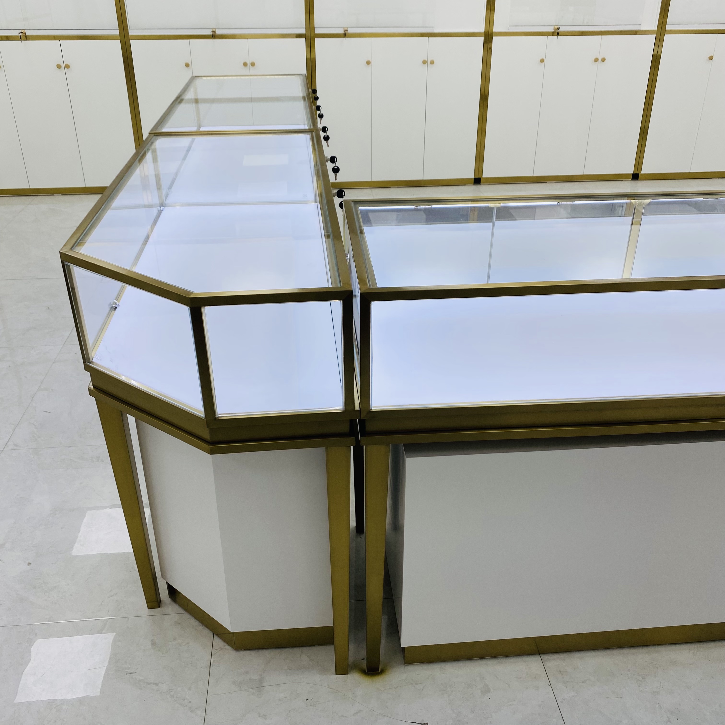 Шкаф из ювелирных украшений титана золота стал лидером в области ювелирного шоу с отличным дизайном, функцией и безопасностью. Благодаря разумному обслуживанию и уходу в долгосрочном использовании эффект отображения может быть обеспечен, и эффект украшений на дисплее может быть улучшен.