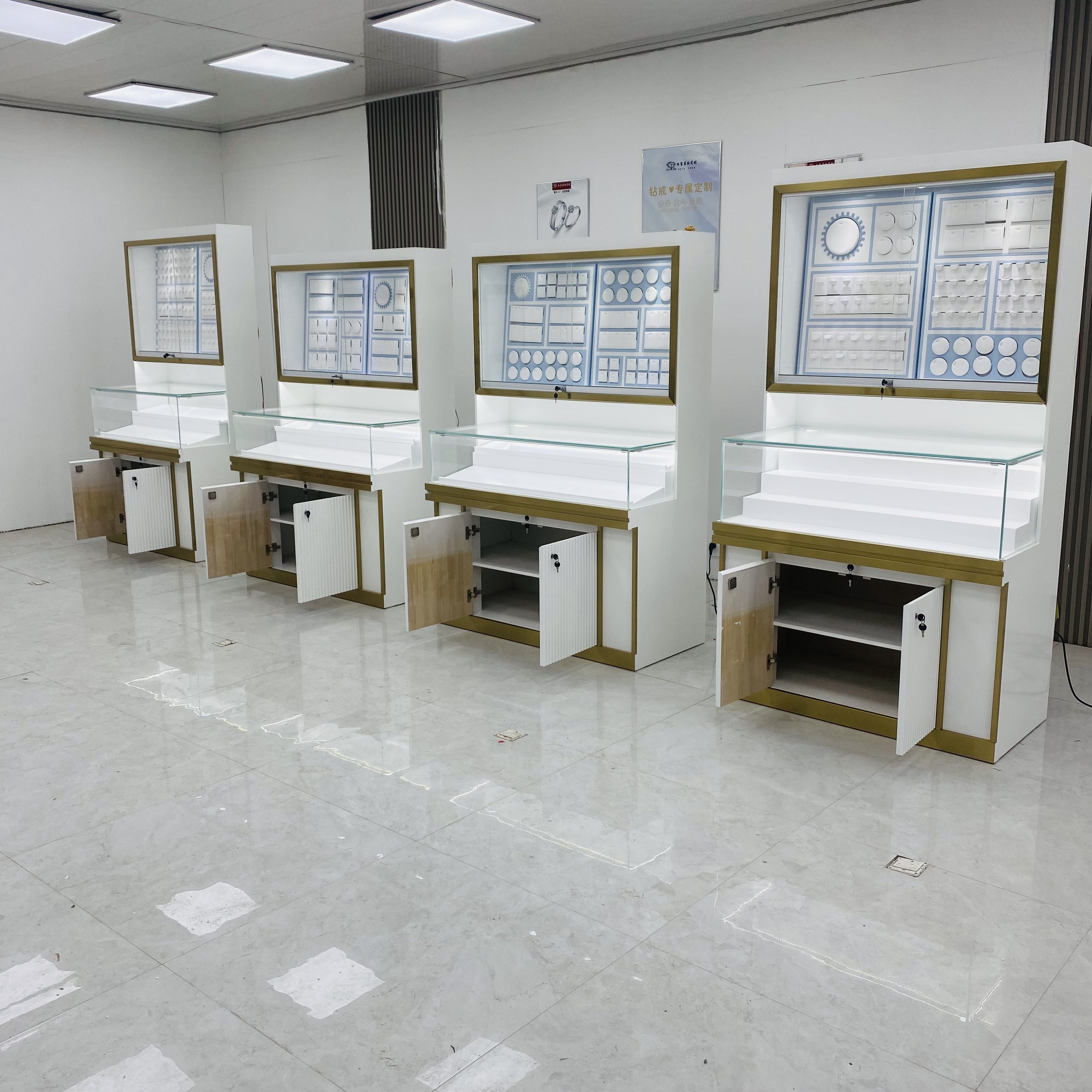 Интерьер шкафа дисплея оснащен высококачественными блокировками безопасности, такими как блокировки паролей, блокировки отпечатков пальцев и т. Д., Для обеспечения безопасного хранения ювелирных изделий. В то же время некоторые дисплеи также имеют встроенные системы сигнализации. Как только кто -то пытается незаконно открыть шкаф для отображения, система немедленно звучит сигнал тревоги, чтобы эффективно предотвратить кражу.