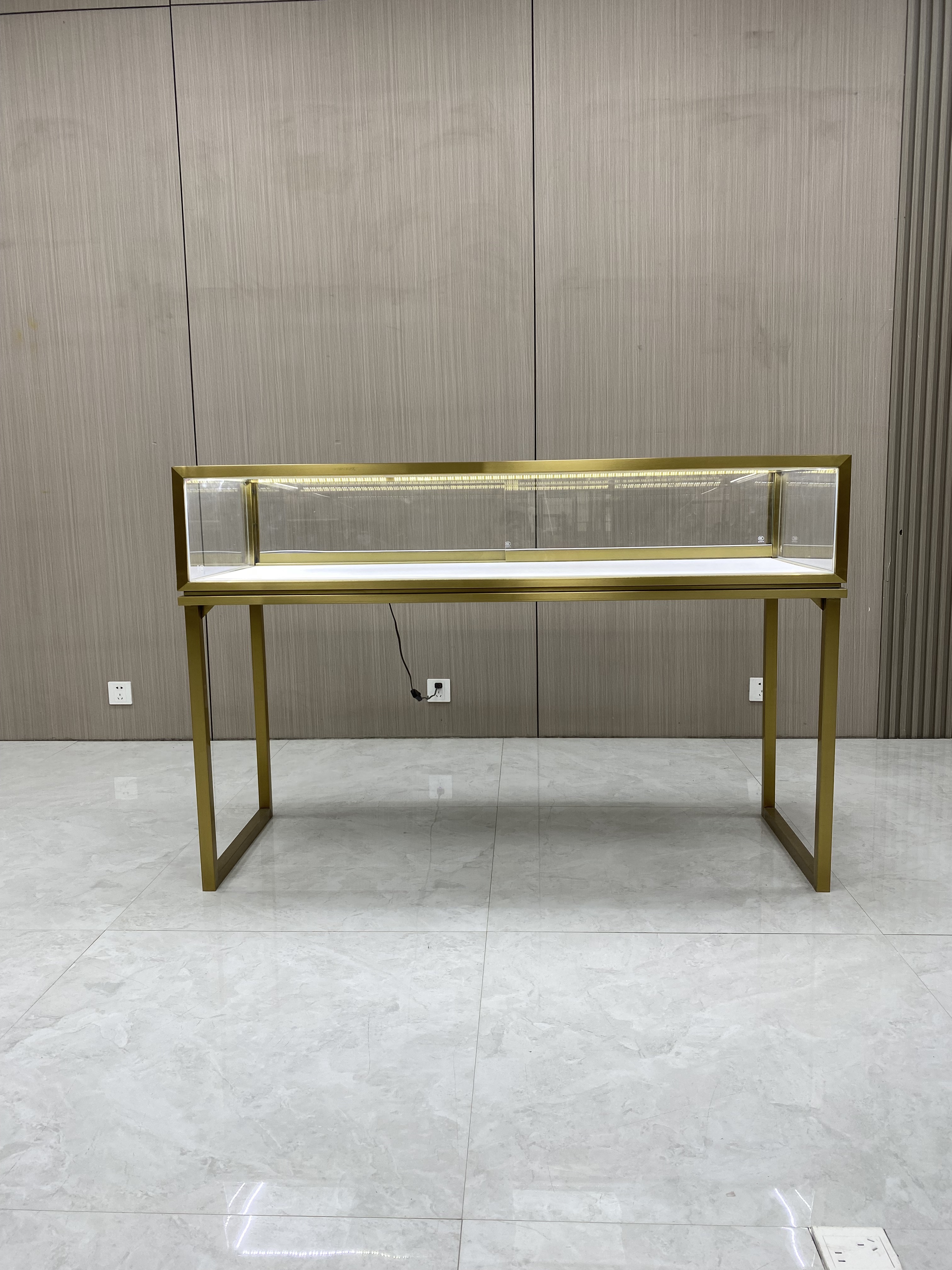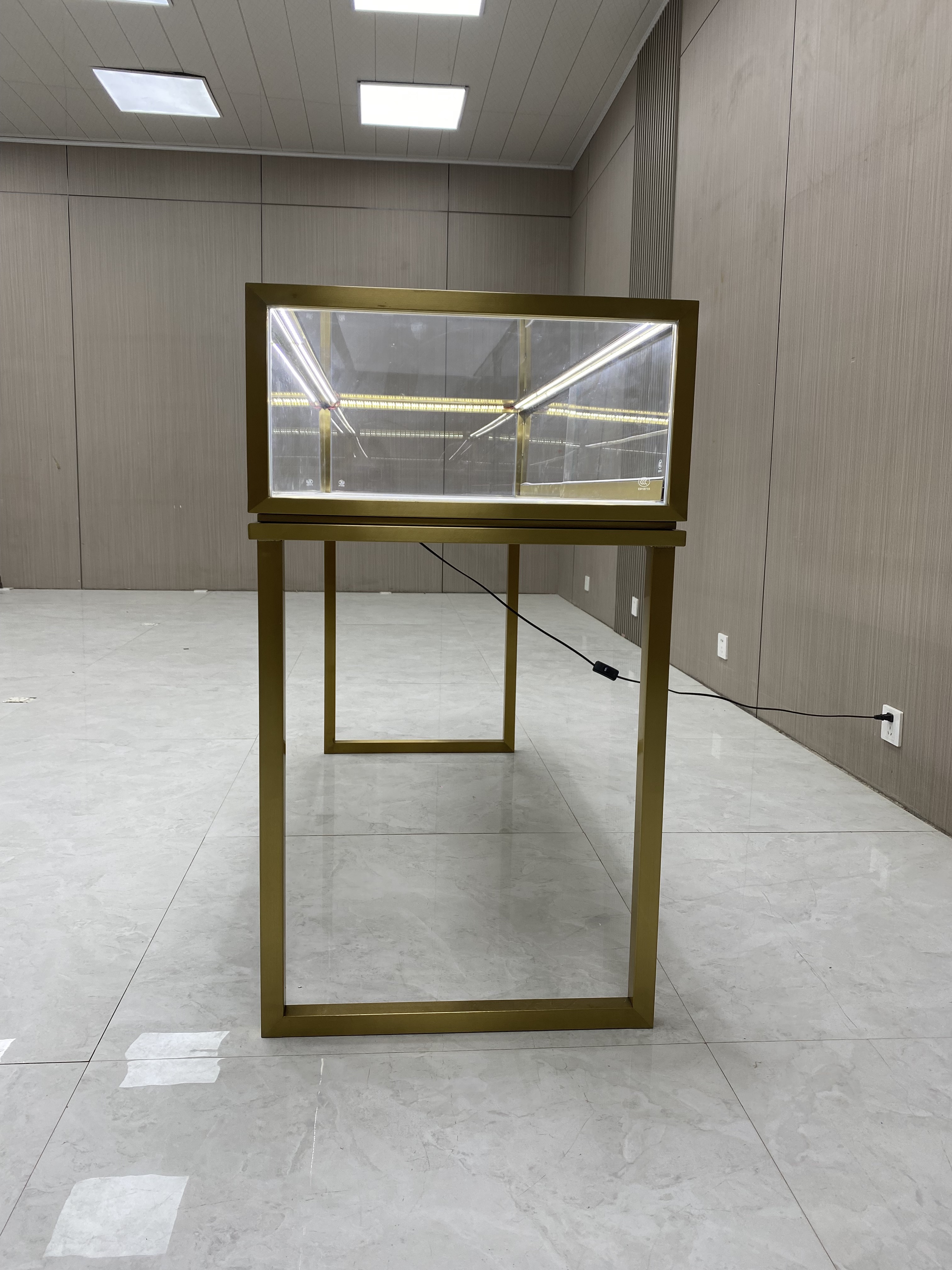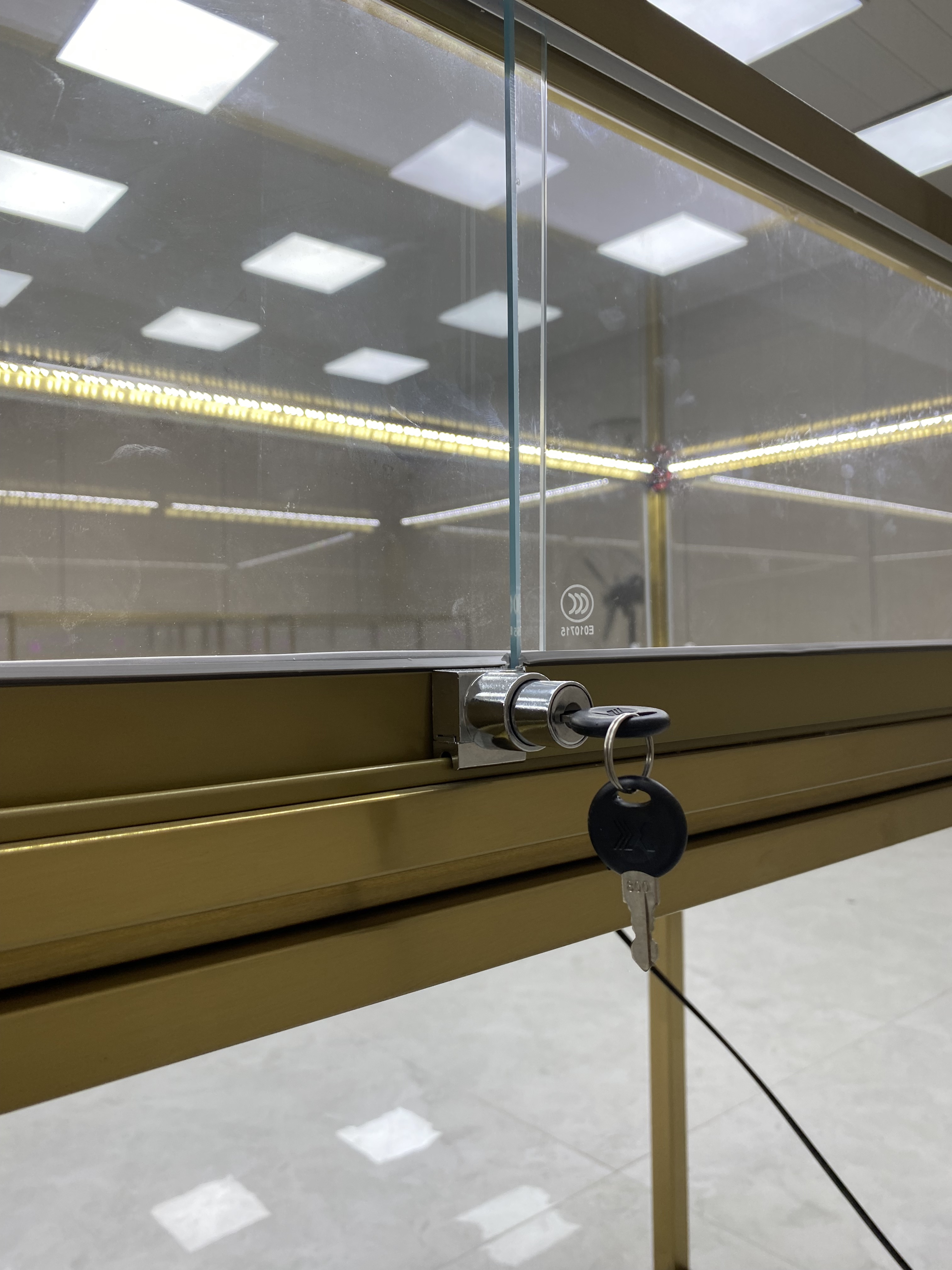 Поверхность обрабатывается титановым золотом, что делает дисплей -шкаф представлен благородный и элегантный темперамент. Титановое золото не только имеет блеск и текстуру металла, но также обладает определенной коррозионной стойкостью, которая может поддерживать долгосрочную красоту и долговечность дисплея.